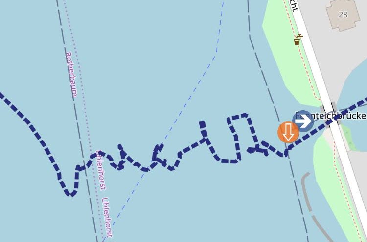 Canua-App Aufzeichnung starten 1. Beginnend mit dem R querab "Hotel Fontenay" Richtung Norden bis etwas hinter Anleger "Rabenstraße". Höhe "Alsterperle" Ostufer (nicht weiter nach Norden fahren) den 270°Bogen fahren. SüdSüdOst Richtung Süden bis Höhe Hotel. 2. - kleines d - 90°Bogen nach Norden - Kehrtwende bis Hälfte der Strecke - nach Westen genau auf Anleger Rabenstraße zu. nach Süden Bogen 180°fahren bis Höhe Skuptur "Drei Männer im Boot" Ostufer. 3.großes E - 90°nach Norden bis Höhe Alsterperle querab Ostufer - Kehrtwende nach ein paar Paddelschlägen (zählen). 90° Süden (nur wenige Paddelschläge) - 90° Osten - Kehrtwende - Süden - 90° Osten 4. 90 Richtung Norden bis Alsterperle - 270°Bogen - Süden - Osten (Skulptur) - Norden 180° Bogen - Süden - Osten - Fertig Aufzeichnung stoppen + speichern! Wahrscheinlich sieht der Track so ähnlich aus, wie die Freihand Malerei oder vielleicht sogar besser :-)