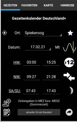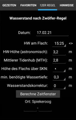Hochwasser am Flach - 2 Zeiten, da auch das Nacht-Hochwasser berücksichtigt wird