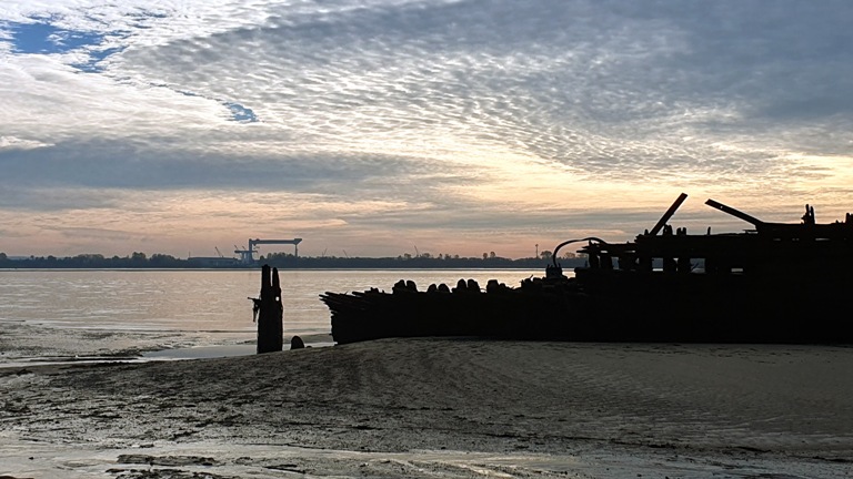 Links im Bild im Vordergrund der Segler "Polarstern" - im Hintergrund das Wrack vom Schlepper "Uwe". Foto von Ralf am 12. November 2022