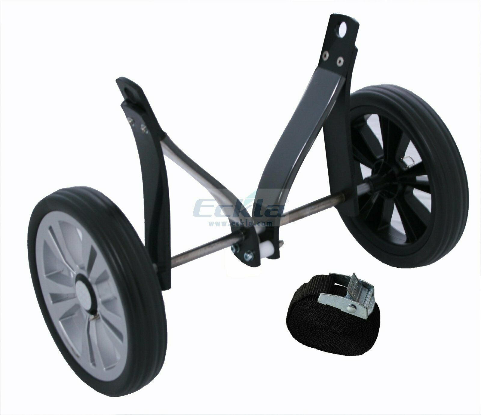 LEICHTER KAJAKWAGEN  Ultraleichter Kajakwagen, V-Förmig, mit pannensicherer Bereifung und Edelstahl Achse. Entwickelt für den leichten Transport von Kajaks an Land. Durch seine durchdachte Form kann der Kajakwagen optimal am Kajakrumpf im Heck- oder Bugbereich mit einem Zurrgurt (ist dabei) befestigt werden. Aufgrund der Konstruktion, ist der Wagen stabil, sehr leicht, lässt sich leicht zerlegen und platzsparend im Kajak verstauen. Maße: ca. 35 x 20 x 5 cm Gewicht: ca. 900 g Belastbarkeit: ca. 40 kg Zurrgurt enthalten