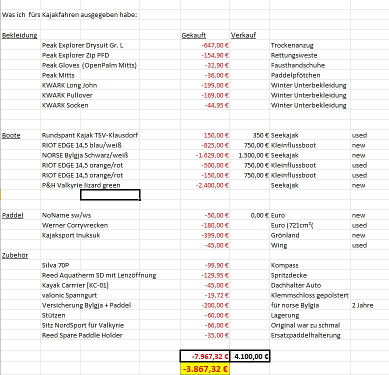 Alles ist regelmäßig im Gebrauch - im Sommer natürlich kein Trockenanzug (evtl. auf der Nordsee)