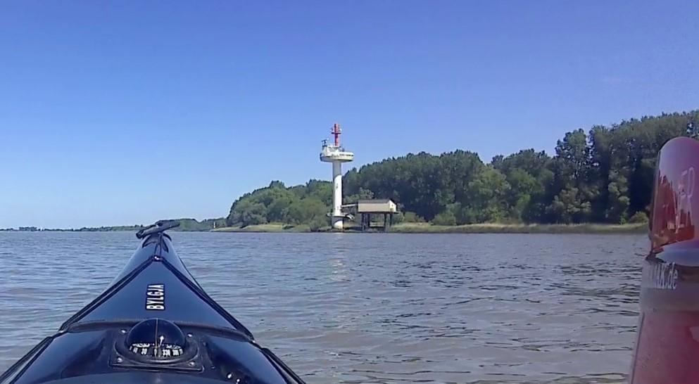 Querab der Backbordtonne (Rot) 100 vom Fahrwasser der Elbe befindet sich der Anlandeplatz oder auch Trittstein D, nahe der Südspitze von Pagensand. Mehr dazu