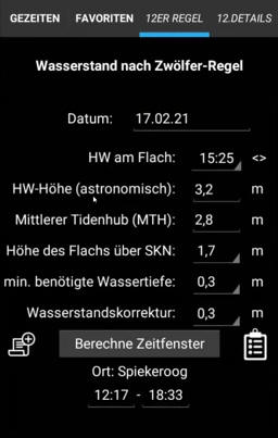 Hochwasser am Flach - 2 Zeiten, da auch das Nacht-Hochwasser berücksichtigt wird