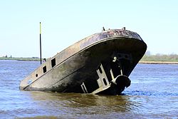 Die Uwe war ein Binnenschiff, dessen Heck seit 1976 als Wrack in der Elbe vor Hamburg-Blankenese liegt.