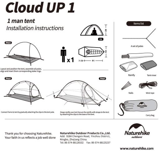 Ein leichte kleines Zelt zu finden, war nicht so einfach für mich. Markenhersteller sind oft sehr teuer und so oft zelte ich nun nicht, dass es den Preis rechtfertigt. Bei diesem in China hergestellten Ein-Mann-Zelt stimmt aus meiner Sicht das Preis-Leistungsverhältnis. Das Naturehike Clud up kostet bei Amazon nur 125 €. Wichtig war bei der Kaufentscheidung: 1. die ausreichende Länge (Ich knapp 2m lang) 2. das Gewicht von ca. 1,5kg inkl. Gestänge Heringe + Unterlegmatte 3. das Packmaß (54x12cm), damit es auch in die Packtasche vom Fahrrad passt.