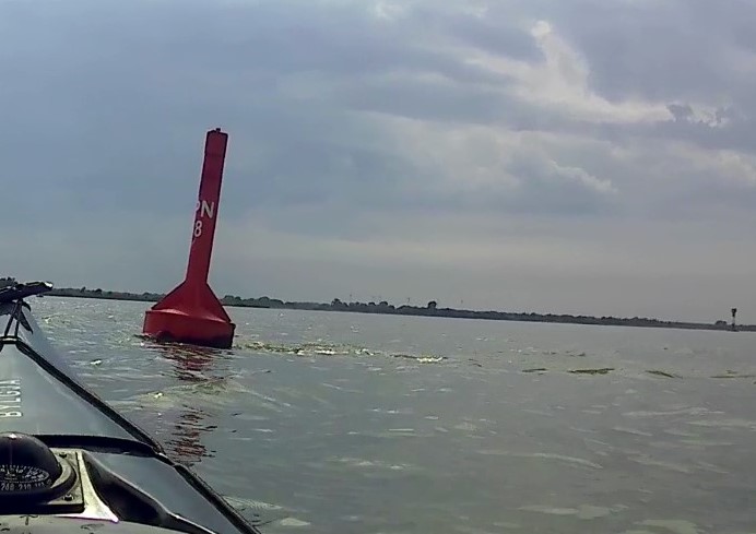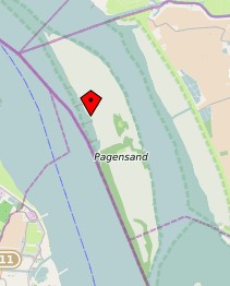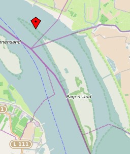 Querab der Backbordtonne (Rot) 100 vom Fahrwasser der Elbe befindet sich der Anlandeplatz oder auch Trittstein D, nahe der Südspitze von Pagensand. Mehr dazu