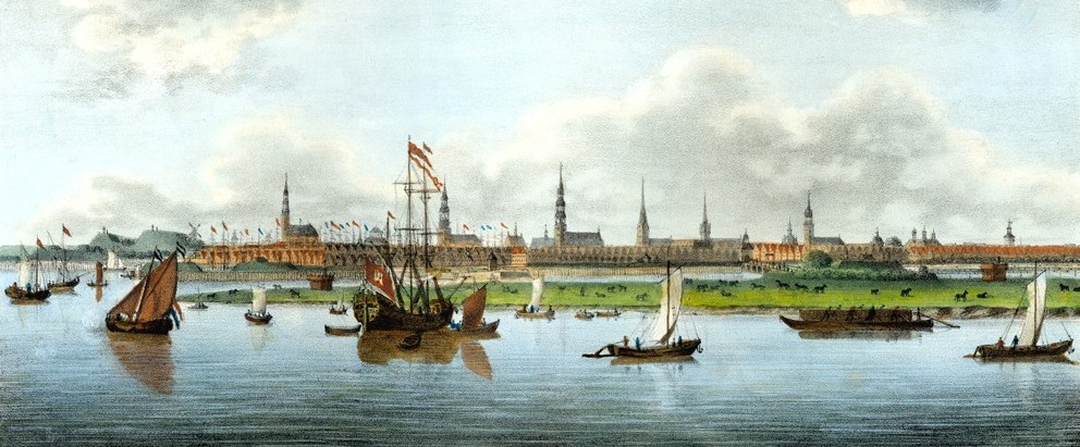 Diese Karte ist hauptsächlich durch meine beruflichen Fahrten im Außendienst entstanden. Die Firma hatte ca. 180 Standorte mit Büros in Hamburg. Fast alle habe ich in meiner mehr als 20 jährigen Tätigkeit besucht. Die Namen der Straßen, ihre Lage und Bedeutung haben mich interessiert. Einen Winter lang war ich mit den Niederdeutschen Wanderpaddlern fast jeden Sonntag im Hafen unterwegs. So habe ich, mit vielen Eindrücken der Umgebung, eine Sammlung erstellt. Orte von Kajaktouren - Hamburger Hafen  Hamburg von der Elbseite 1700 Quelle: FHH Getreide und Holz, vom Hinterland der Elbe, waren mengenmäßig wichtige Exportartikel. Pelze und Wachs kamen aus Osteuropa. Salz kam aus Lüneburg. Noch heute sind durch die Namen einiger Hafenbecken die Handelsbeziehungen erkennbar: Magdeburger Hafen (1868 erstes künstliches Hafenbecken - Hannoversche Bahnhof im Osten) Moldauhafen (1887 erbaut - 1919 nach dem ersten Weltkrieg für 99 Jahre an die Tschechoslowakei verpachtet) Schon mit Ende des 17. Jahrhunderts musste er als Niederhafen in die Elbe hinein erweitert werden. Da aber auch diese Anlagen nach wenigen Jahren nicht mehr ausreichend waren, wurde 1767 eine Reihe von Duckdalben in die Elbe gerammt, an der die großen Segler festmachen konnten. Der Umschlag fand zu Wasser statt, die Güter wurden mit schiffseigenem Ladegeschirr auf kleinere Schiffe, Ewer und Schuten umgeschlagen und über die zahlreichen Fleete und Wasserwege zu den Speichern und Märkten der Stadt transportiert. 1795 folgte eine zweite Dalbenreihe, die bis zum Jonas reichte, der Bastion Johannes der damaligen Stadtmauer, heute durch die Promenade des Johannisbollwerk gekennzeichnet. Die so entstandene vorgelagerte Anlage wurde Jonashafen genannt.