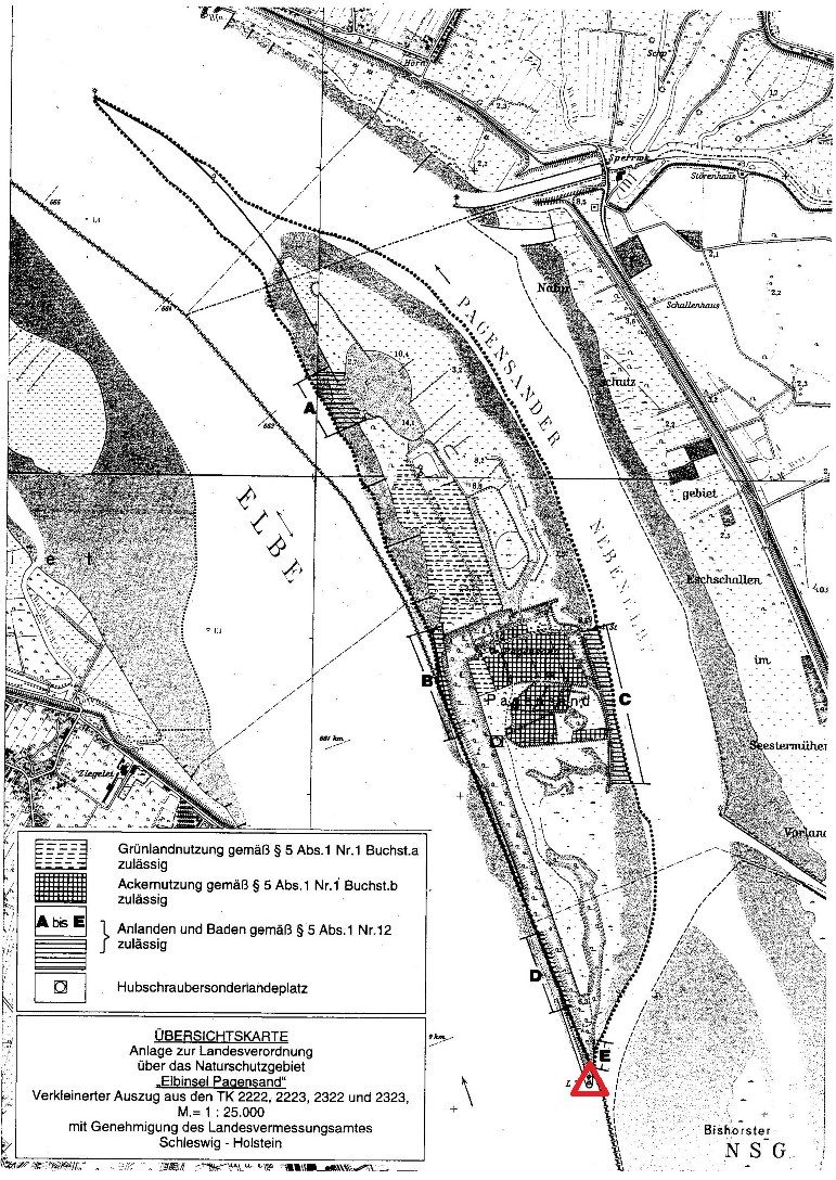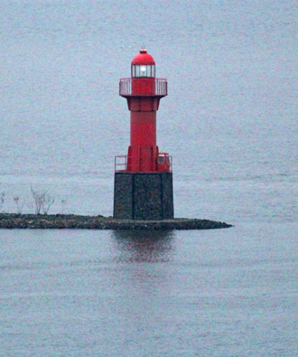 | | Südspitze Pagensand  Der rote, runde Stahlturm mit Laterne, halbrunder Kuppel und Galerie stand bis April 2015 auf einem mit Basalt verblendeten Steinsockel, an der Südspitze der Elbinsel Pagensand.
